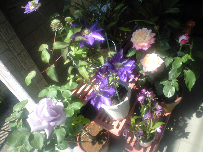 他にも大きめのバラをいくつかや、いっぱいの盆栽や、熱帯魚を世話してます。